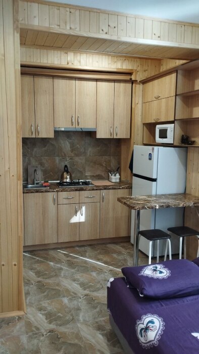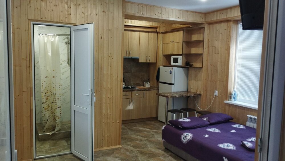 В доме установлено автономное отопление. На территории всего 5 номеров, в числе которых есть дом под ключ, а также 1-комнатные и 2-комнатные номера. У каждого номера своя оборудованная кухня. На 1 этаже могут комфортно разместиться до 8 человек, на 2 этаже - до 7 человек, что удобно для большой компании.