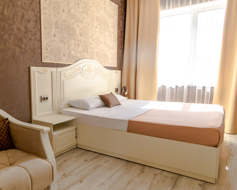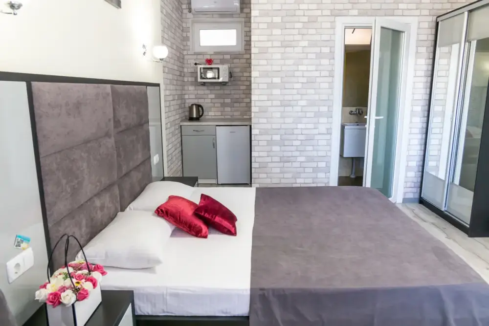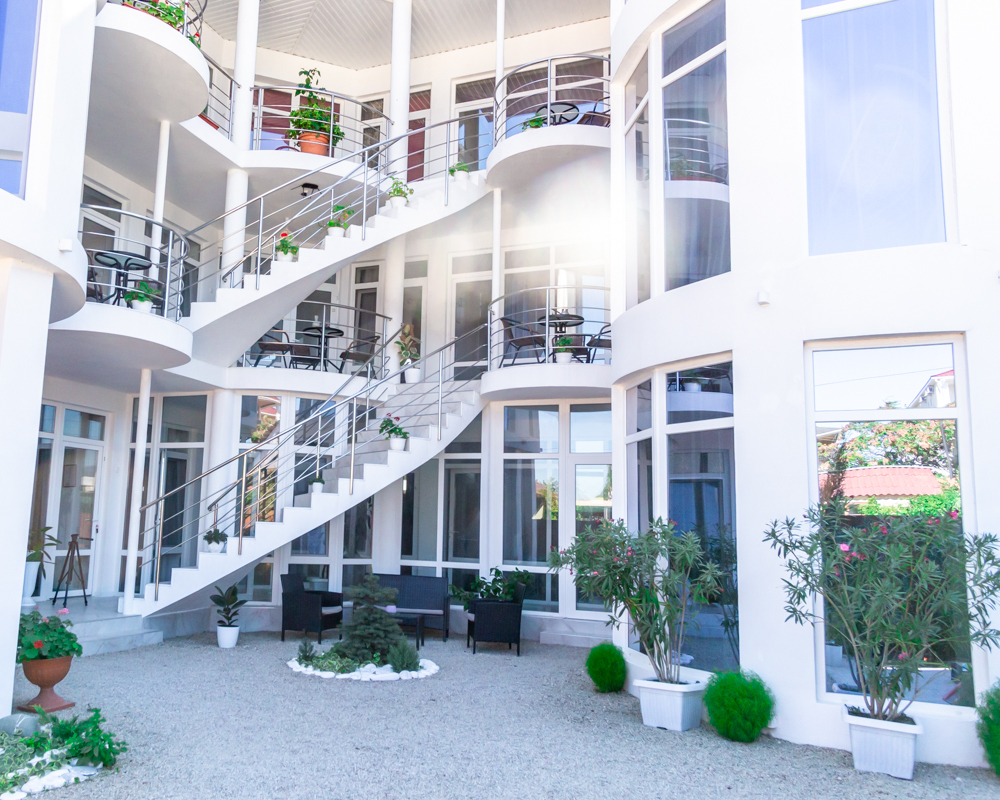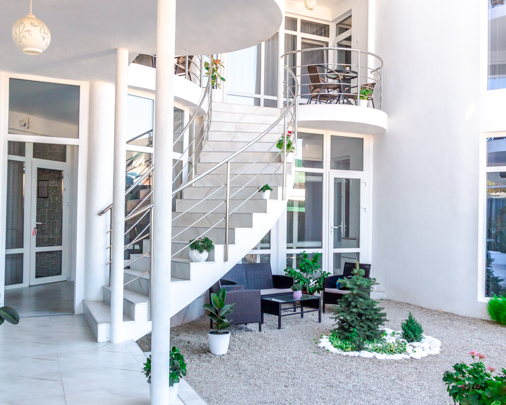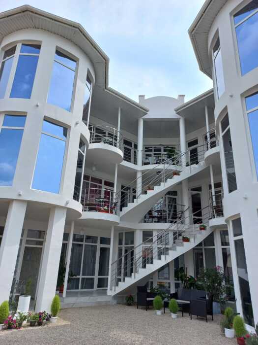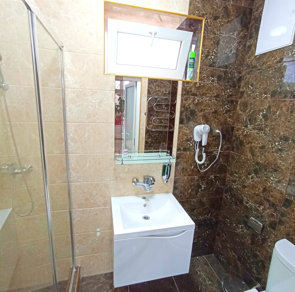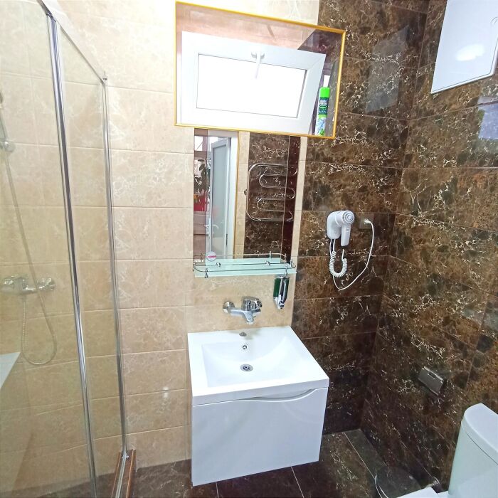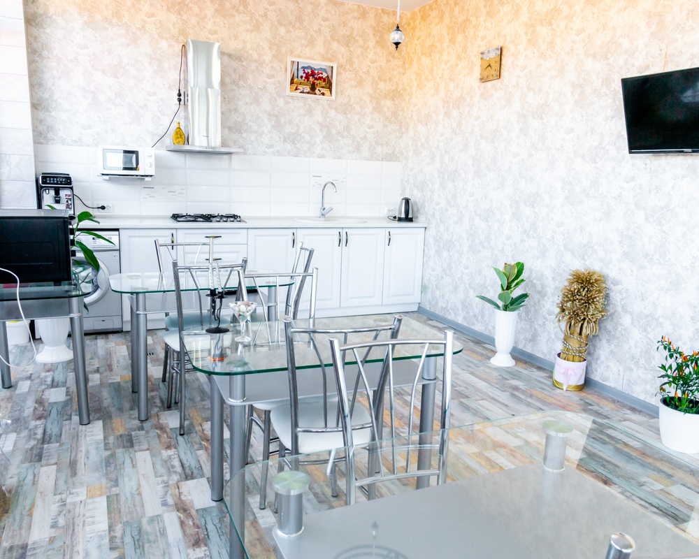 Всего в доме 10 номеров. Номера просторные, особенно 2-комнатные со своими кухнями. Душевые оборудованы фенами и средствами личной гигиены. Выдаются полотенца.