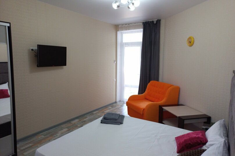 Ближайший пляж галечный и кварцевый песок, бесплатный. Путь к морю лежит по улице Гагарина, мимо аквапарка.