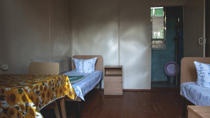 Телевизор есть общий возле кабинета администратора на площади, оборудованной навесом и шезлонгами.