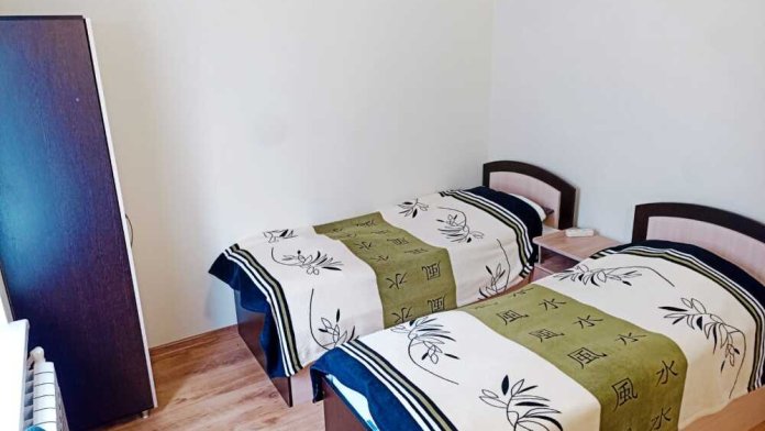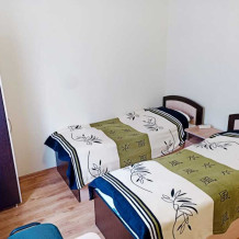 4-местный номер расположен на втором этаже гостевого дома. В комнате две односпальные и двухъярусная кровать, шкаф, стол, стулья, комод, холодильник, кондиционер, зеркало, телевизор, Wi-Fi. Также постельное белье, полотенца, покрывала.