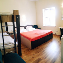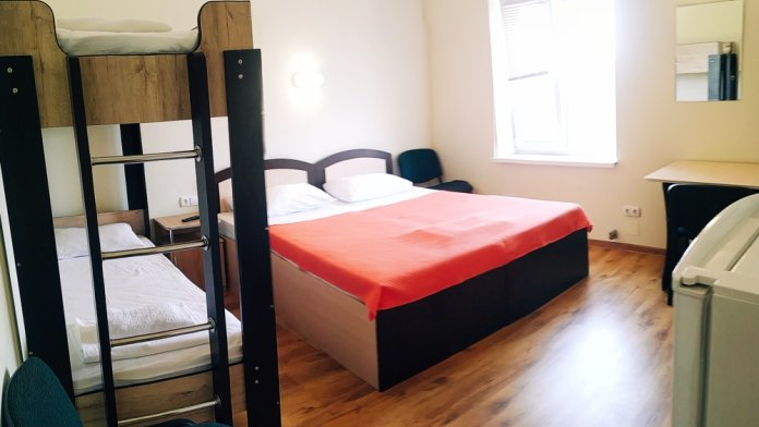 4-местный номер расположен на втором этаже гостевого дома. В номере двуспальная и двухъярусная кровати. Холодильник, кондиционер, зеркало, телевизор, Wi-Fi. Также постельное белье, полотенца, покрывала. Можно поставить доп место. Вид из окна во двор. Санузел на этаже.