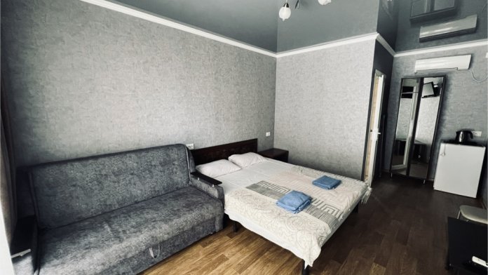 Номера с выходом на общую трассу. Оснащены кондиционером, холодильником, отдельным санузлом. На террасе место для отдыха (стол и стулья).