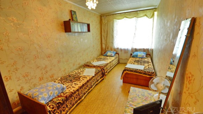 К размещению гостей предлагаются 3,4-местные номера категорий «Эконом» и «Стандарт». В номерах: мебель (односпальные/двуспальная кровать, диван-кровать, шкаф, прикроватные тумбочки), телевизор, кондиционер или вентилятор, санузел и душ (в номере или общий).