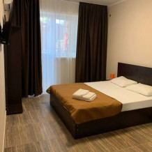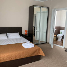 Все номера комфортабельные, выполнены в индивидуальном стиле, оборудованы отдельным санузлом с душевой кабиной (холодная и горячая вода - круглосуточно). В каждом номере: кондиционер, холодильник, телевизор, фен, удобная мебель. Большинство номеров с лоджиями и видом на море.