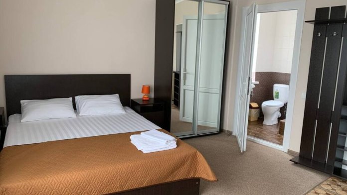 В гостевом доме 33 номера со всеми удобствами, кафе на территории, уличная терраса, мангальная зона.