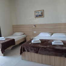 Вы можете снять уютные, чистые, комфортные номера со всеми удобствами. На закрытой территории есть открытый бассейн, парковка, зона отдыха с мангалом. Также к Вашим услугам гладильные принадлежности, беспроводной интернет, а также столовая, где Вы сможете отведать вкусные домашние блюда.