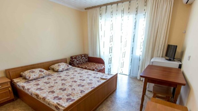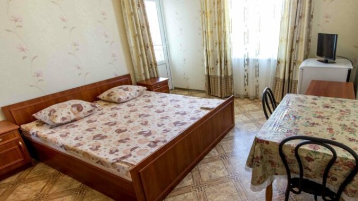 В номере две спальни с кондиционерами и телевизорами, санузел, кухонная зона, оборудованная всем необходимым, балкон.