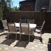 Во дворе зона отдыха. Собственная кухня, утюг, посуда, интернет. В номерах есть кондиционер, телевизор, холодильник.Цена за номер зависит от количества дней и количества человек.