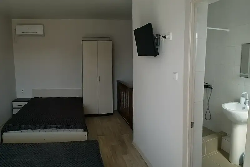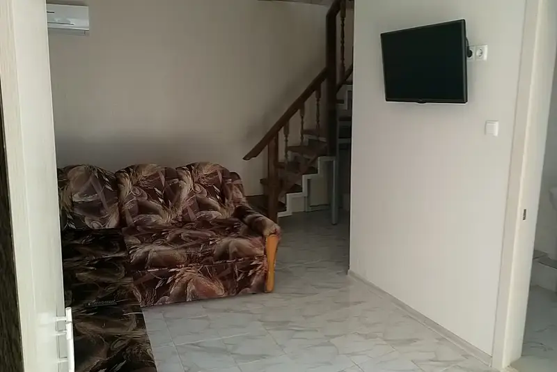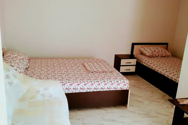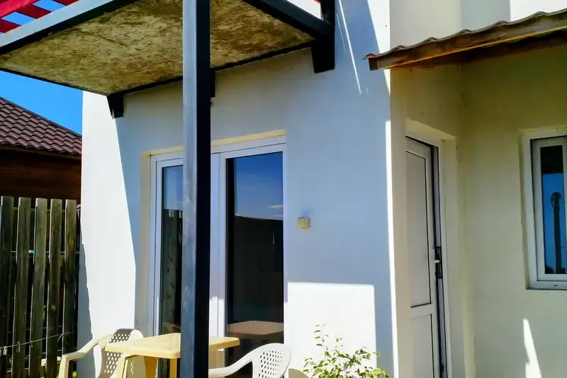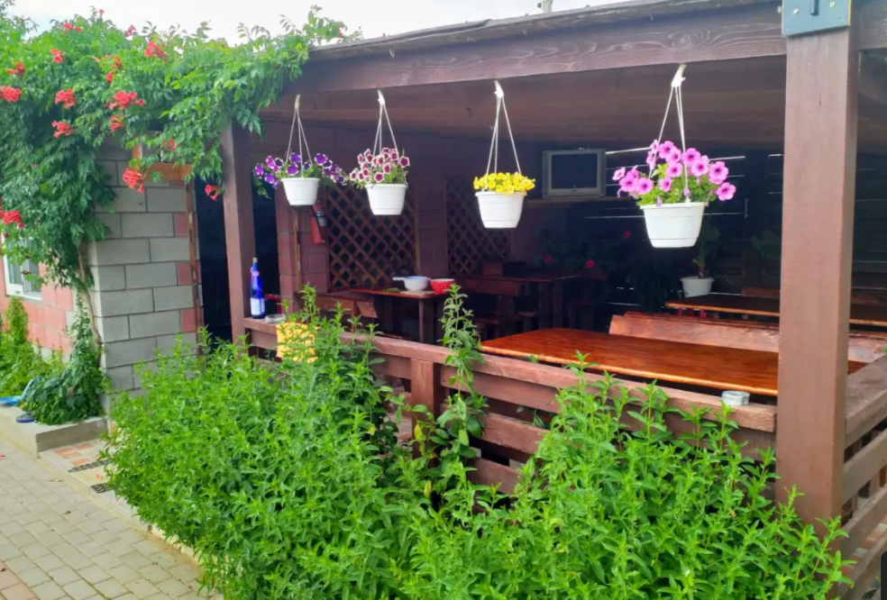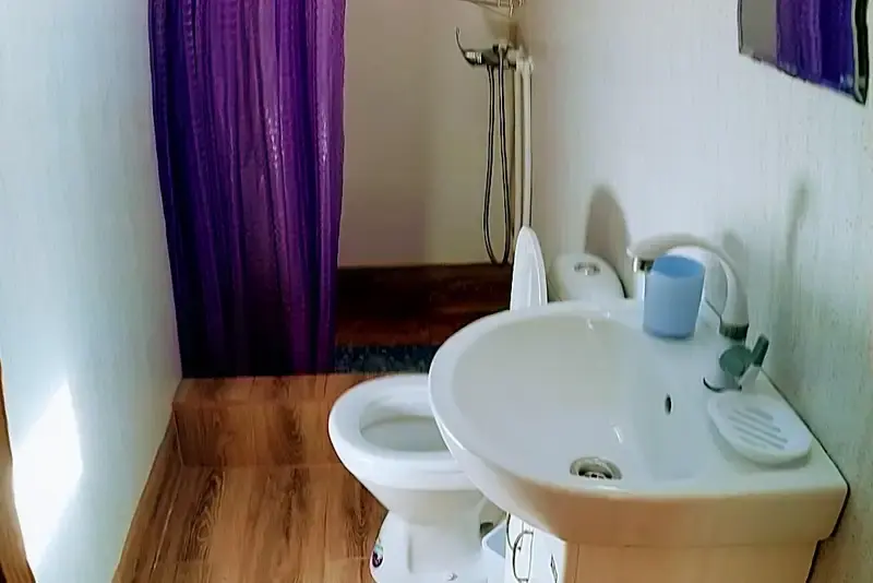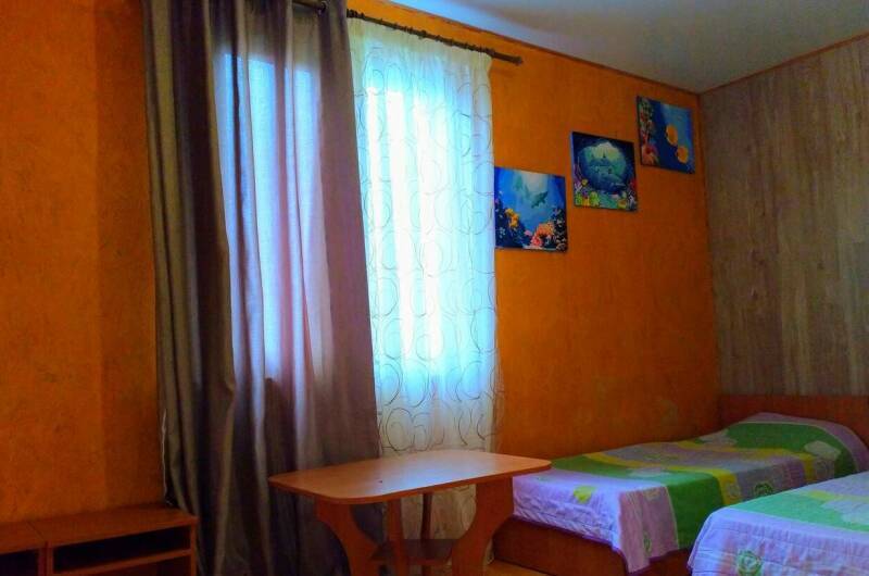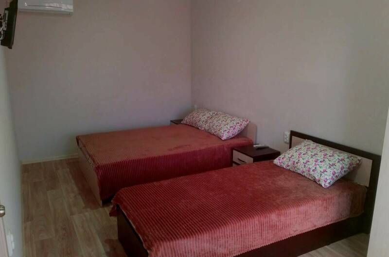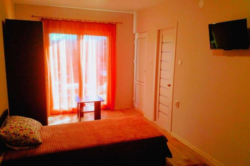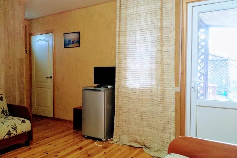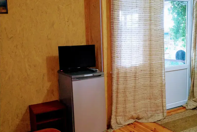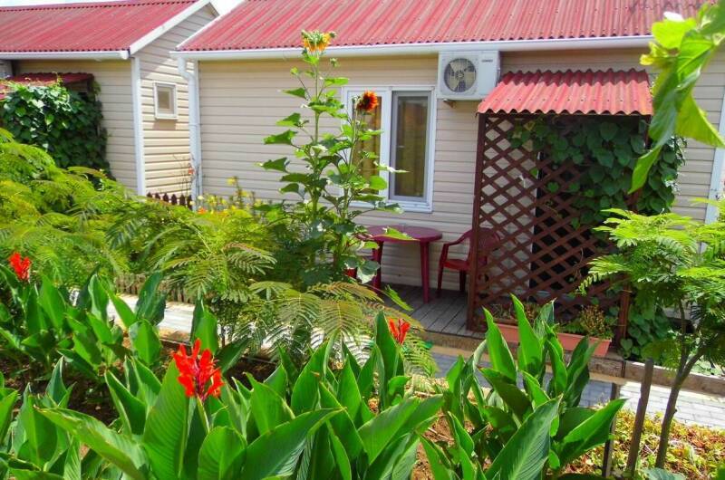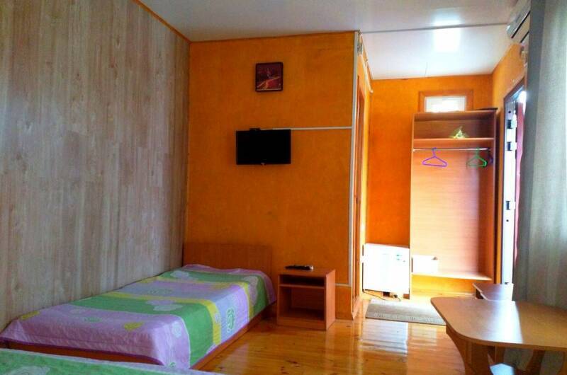 Каждый домик и номер, с туалетом и душем, с горячей и холодной водой. Каждый домик и номер, с холодильником, кондиционером и телевизором, интернет WiFi. В домике и номере, новая мебель, кровати с ортопедическими матрасами. На территории отдельная кухня-столовая, с возможностью приготовления пищи самостоятельно, весь необходимый инвентарь имеется. Так же в сфере услуг, мы можем Вас обеспечить трёхразовым питанием.