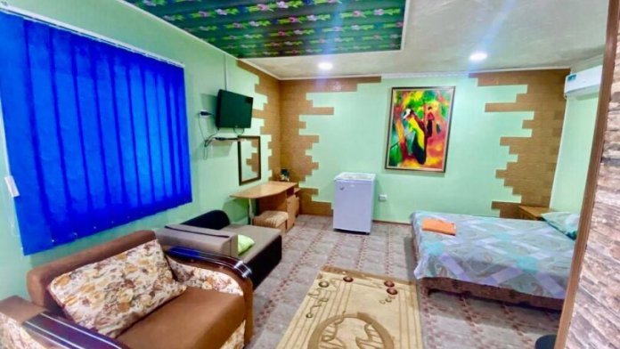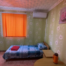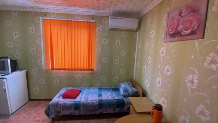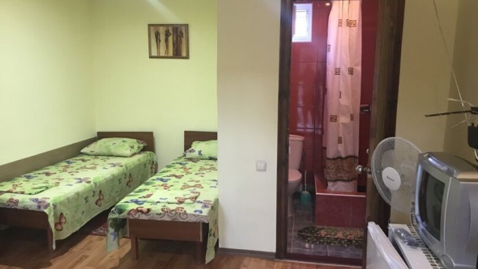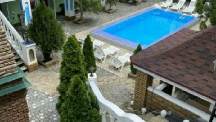 Гостевой дом состоит из двух - трехэтажного корпуса. Имеются номера разной вместимости, от эконом до люкс (14-40 кв.м.). В каждом номере: телевизор, холодильник, кондиционер (вентилятор), санузел, новая мебель. Холодная и горячая вода постоянно, имеется своя скважина, двор просыпан и выложен экологически чистым морским камнем. Есть номера с кондиционерами, собственной кухней, спутниковым телевидением, а так же номера с видом на горы. Территория круглосуточно охраняется, Wi-Fi, ведется видеонаблюдение (24 часа в сутки). Уборка производится при заезде и по просьбе отдыхающих.